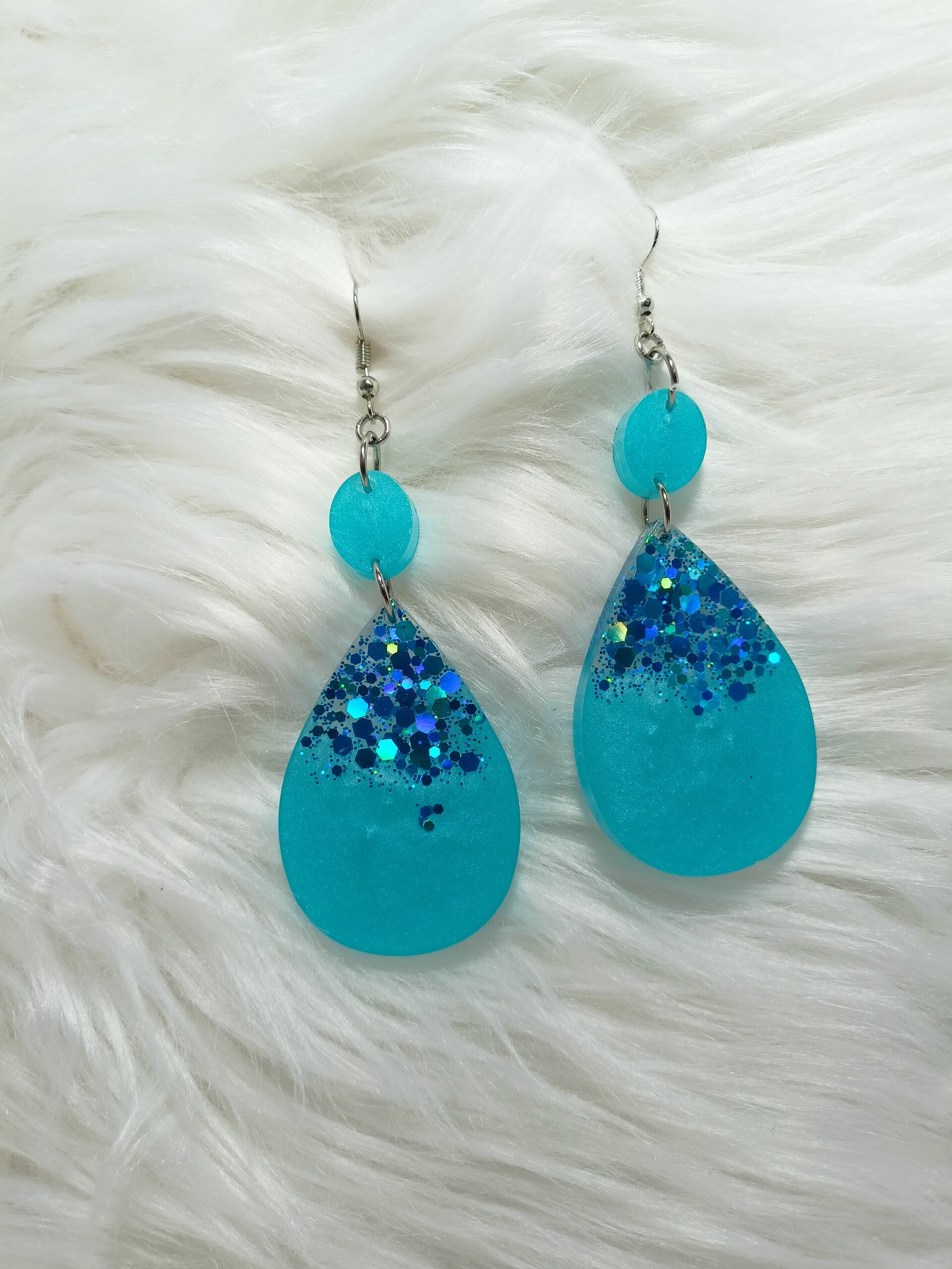 Orecchini Goccia con glitter, ganci in acciaio inox.